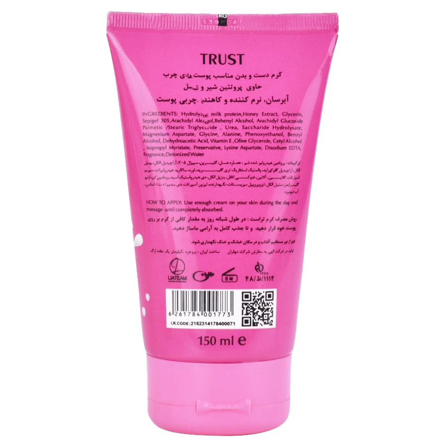 کرم شیر و عسل تراست به دلیل ترکیب مواد معدنی که در شیر و عسل موجود است خاصیت تغذیه کنندگی داشته و پوست را به خوبی آبرسانی میکند. این کرم همچنین نرم کنندهای طبیعی بوده و پوست را هیدراته میکند. شیر و عسل هر دو دارای خواص ضدباکتریایی زیادی هستند که به زدودن آلودگیها از روی پوست کمک زیادی میکنند.