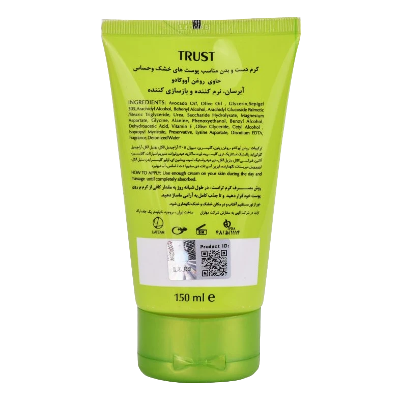 کرم آووکادوی تراست، با دارا بودن روغنهای کاملا طبیعی و خالص آووکادو موجب افزایش نرمی و لطافت و یکپارچگی عملکرد پوست میشود. اثر نرمکنندگی محصول به گونهایست که پس از جذب، چربی از خود به جا نخواهد گذاشت. غنی بودن این محصول از ویتامین E علاوه بر مهار رادیکالهای آزاد و جلوگیری از آسیبهای پوستی، موجب بازسازی پوست خواهد شد. همچنین این محصول با کنترل التهابات پوستی، انتخابی مناسب برای پوستهای حساس است. از طرفی خلوص روغنهای مورد استفاده در این کرم در کنار سایر مواد موثره بکار رفته شده در محصول، موجب رطوبت رسانی طولانی مدت به پوست شده که گاها تا 24 ساعت دوام خواهد داشت.