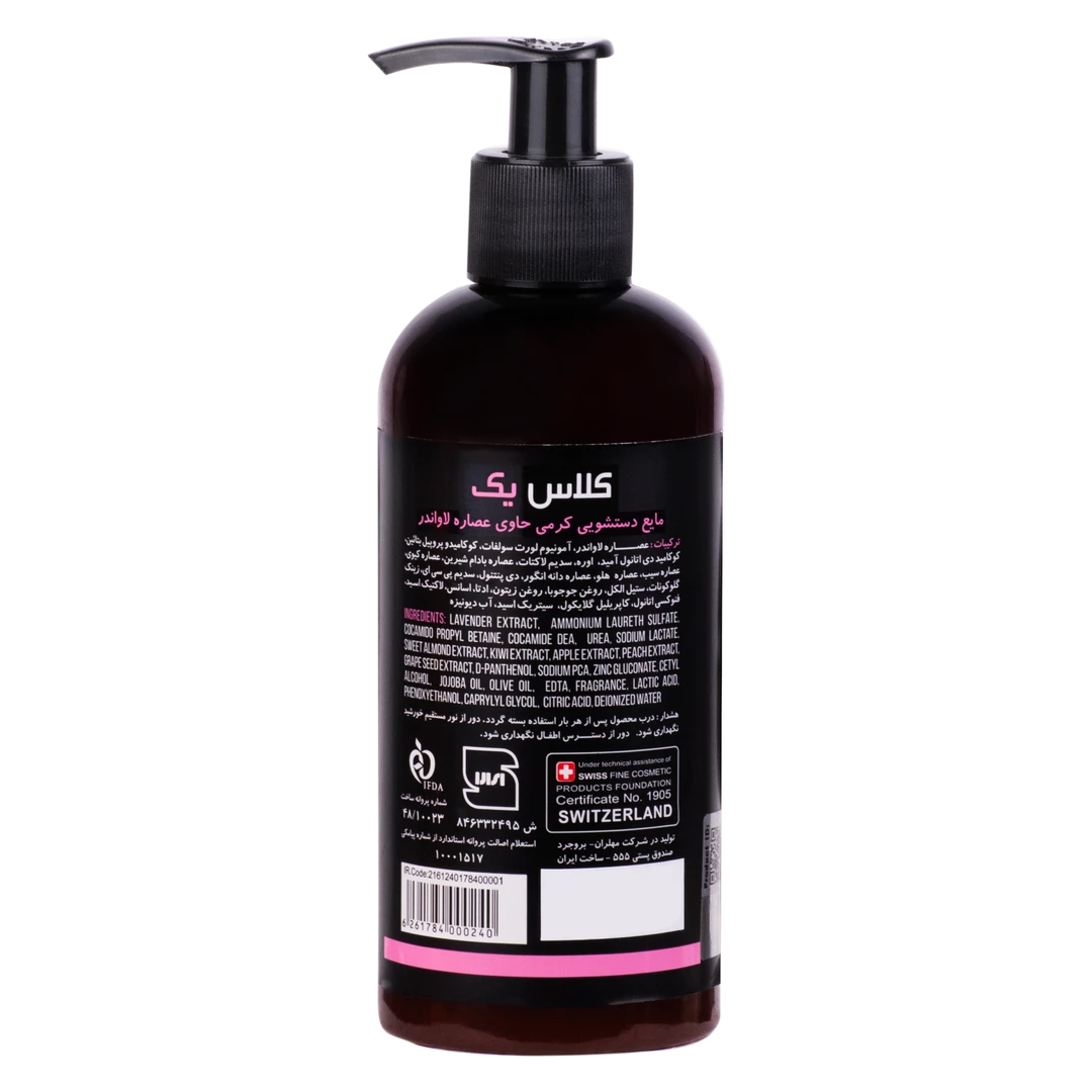 مایع دستشویی کرمی کلاس یک حاوی عصاره لاواندر