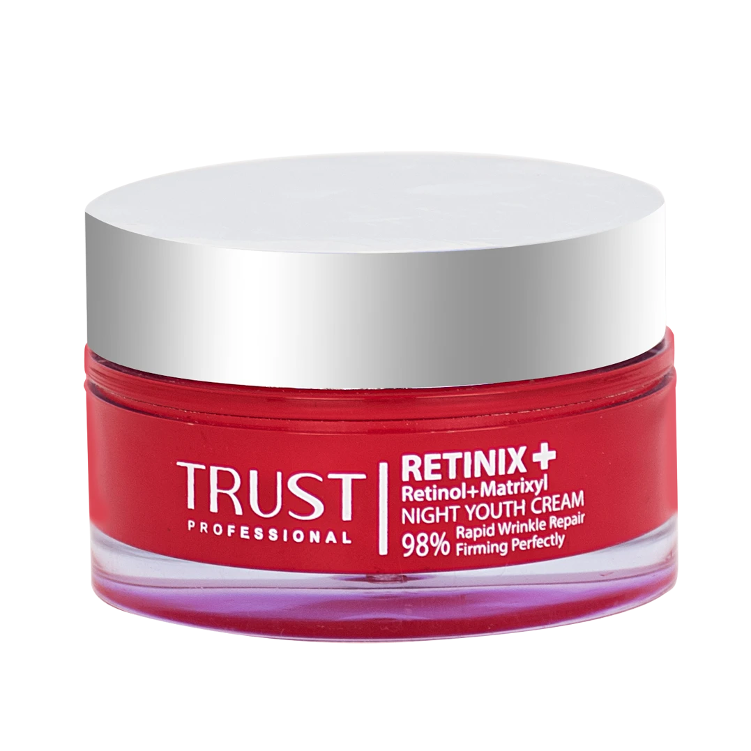 از آنجاییکه با افزایش سن و گذشت زمان، به صورت طبیعی، میزان تولید پروتئینهای استحکامبخش پوست کاهش یافته و پوست دچار چینوچروک میگردد، پوست به مراقبت و آبرسانی بیشتری نیاز دارد؛ بنابراین استفاده از محصولات تخصصی ضدچروک برای همه افراد ضرورت دارد. کرم جوانساز رتینول تراست، به واسطه بهرهمندی از ماده مؤثره رتینول و با افزایش تکثیر سلولهای پوستی و افزایش تولید کلاژن در آنها، به بازسازی سلولهای مرده پوستی و افزایش استحکام پوست کمک میکند و با داشتن خواص آنتیاکسیدانی و مهار رادیکالهای آزاد، جلوی ایجاد چینوچروک در پوست را میگیرد. همچنین با داشتن ترکیب فعال ماتریکسیل مورفومیکس، به طرز مؤثری چینوچروکهای صورت، به ویژه خطوط عمودی آن و چروکهای پنجه کلاغی را از بین برده و به تقویت ساختار پوست صورت کمک میکند.