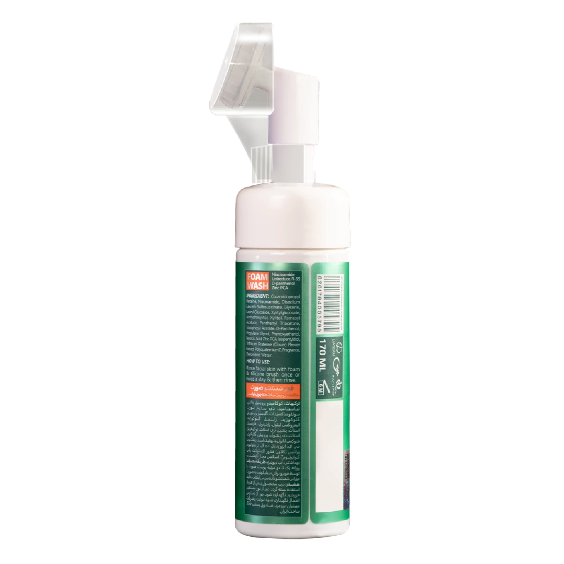 روش مصرف: روزانه یک تا دو مرتبه پوست صورت را توسط فوم و براش سیلیکونی به صورت دورانی شستشو داده سپس آبکشی نماید؛ و حتماً پس از استفاده درپوش اپلیکاتور گذاشته شود.