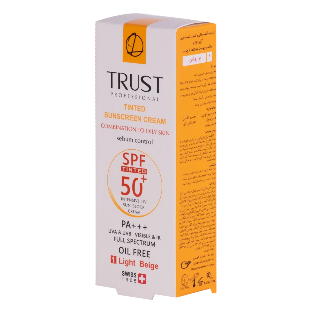 کرمهای ضدآفتاب رنگی تراست با SPF50+ از مرغوبترین و جدیدترین مواد اولیه موثره دارای حداکثر حفاظت دربرابر پرتوهای مضر خورشید ساخته شدهاند؛ این کرم با وجود بهرهمندی از بافتی سبک، دربرابر آسیبهای وارده توسط نور خورشید به خوبی از پوست محافظت و با مهار رادیکالهای آزاد از تخریب سلولهای پوستی جلوگیری میکند. همچنین با مصرف این محصول، بدون بسته شدن منافذ پوستی و ایجاد خلل در تنفس سلولهای پوستی، ضمن کنترل چربی، پوستتان آبرسانی میشود.