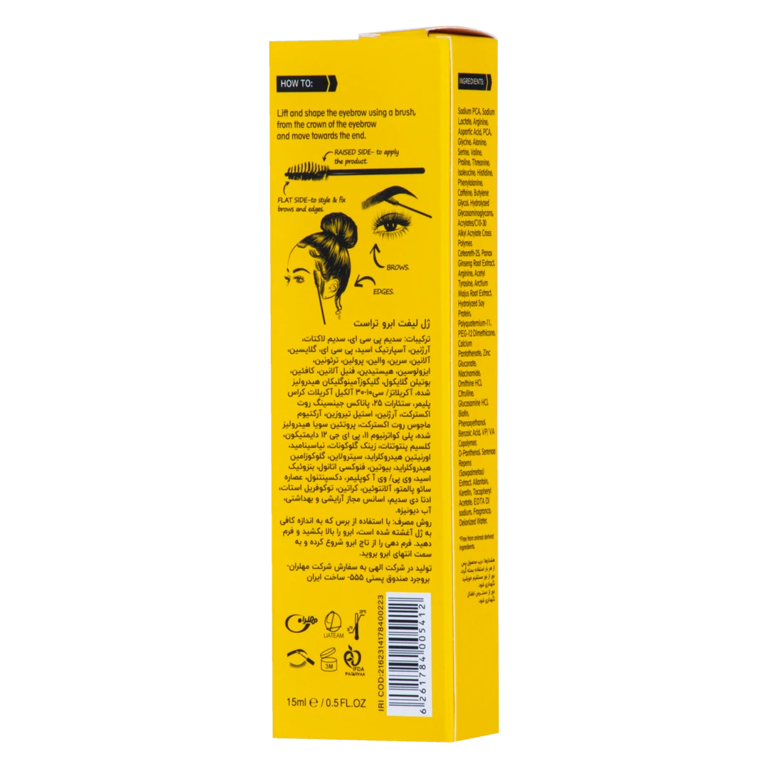 روش مصرف: با استفاده از برس که به اندازه کافی به ژل آغشته شده است، ابروی را بالا بکشید و فرم دهید. فرم دهی را از تاج ابرو شروع کرده و به سمت انتهای ابرو بروید.
