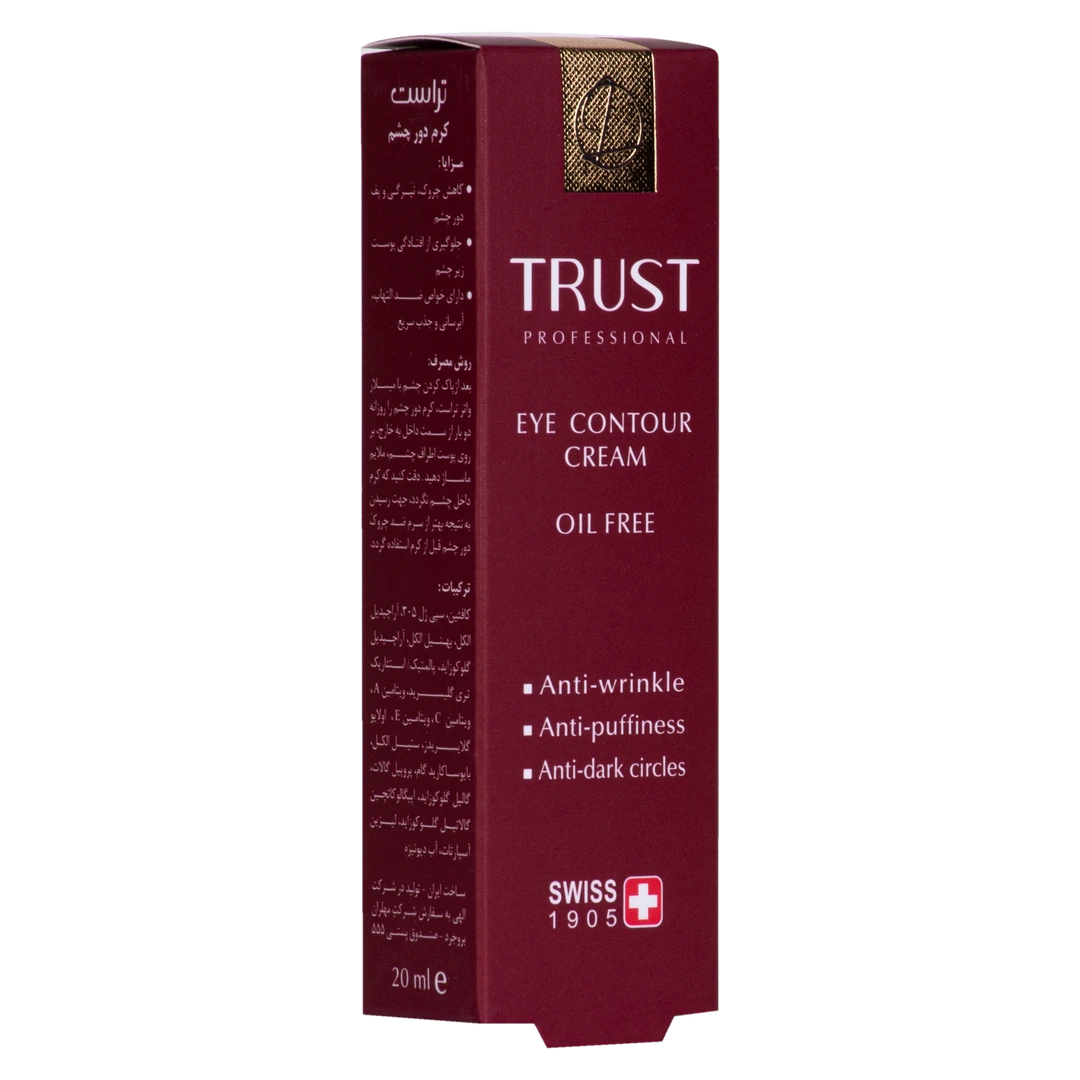 شبها و صبحها، کرم دور چشم تراست را به آرامی به پوست زیر چشم و اطراف چشم قرار داده و با ضربههای ارام تا جذب کامل آن از سمت داخل به خارج صورت، ماساژ دهید.