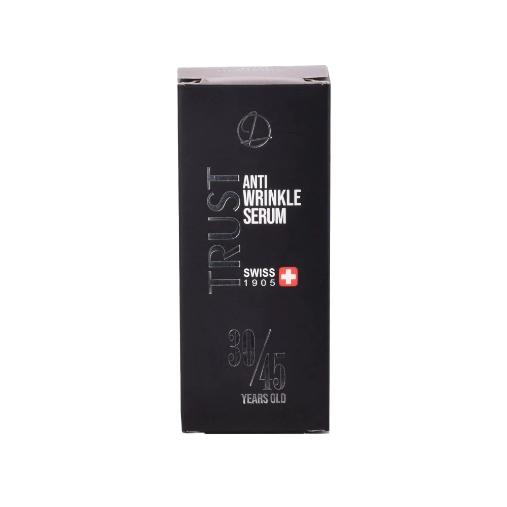 سرم ضدچروک صورت تراست (مناسب 30 تا 45 سال)، با داشتن ترکیبات فعال آبرسان و پپتیدهای تقویتکننده پوست، باعث تحریک تولید کلاژن در پوست و آبرسانی آن میشود. ترکیب هیالورونیک اسید به صورت همافزا با سدیم پی سی ای و زایلیتول، علاوه بر آبرسانی، به رفع چینوچروکهای پوستی کمک میکند. ترکیب گلوکونولاکتون خاصیت لایهبرداری داشته و ضمن از بین بردن سلولهای مرده پوست آن را آبرسانی نیز میکند. این سرم از آسیب رادیکالهای آزاد ناشی از پرتوهای UV به پوست جلوگیری کرده و از بروز چینوچروک روی پوست پیشگیری میکند.