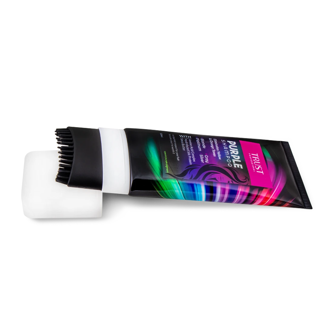 روش مصرف: هفته ای یکبار شامپو بنفش تراست را بر روی موهای خیس ماساژ داده و اجازه دهید تا پنج دقیقه آغشته بماند سپس با آب بشوئید. پیشنهاد می گردد هنگام مصرف از دستکش یکبار مصرف استفاده شود.